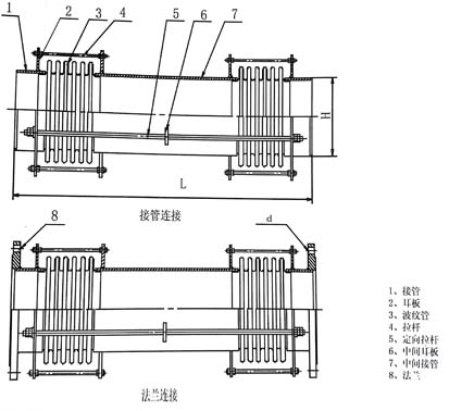 2.為了減少管架受力,可對此類膨脹節(jié)的每段波紋管在安裝前進行軸向“預變形”,用戶需要時請在合同中注明。